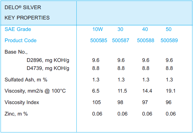 quality, monograde, heavyduty diesel engine oil specially designed to lubricate diesel and gasoline engines requiring API CF or SF performance lubricants. Delo® Silver is suitable for use with high sulfur fuels at appropriate oil drain intervals due to its level of alkaline reserve
