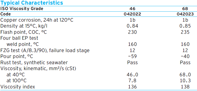 (PAO) base fluids. Polyalphaolefi n base fluids have excellent thermal and oxidation stability, high viscosity index, low pour point, and excellent hydrolytic stability. A high-performance additive package enhances these qualities. The result is as superior lubricant for application in turbochargers and in most reciprocating and rotary screw compressors.