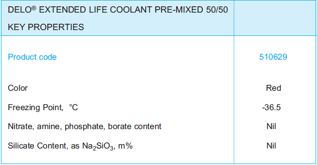 Coolant Pre-Mixed 50/50 is a premium performance, environmentally sensitive prediluted coolant, anti-freeze and corrosion inhibitor, based on extended-life organic acid Carboxylate Technology plus an additional nitrite corrosion inhibitor in ethylene glycol.