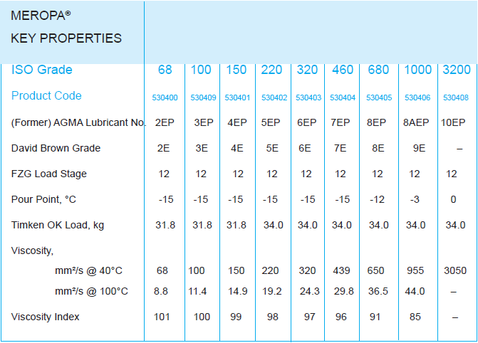 Meropa®oils are high performance, mild EP, industrial gear lubricant formulated with a sulfur-phosphorus additive system, which also provides rust and oxidation inhibition, a corrosion and oxidation inhibitor and a metal passivator.